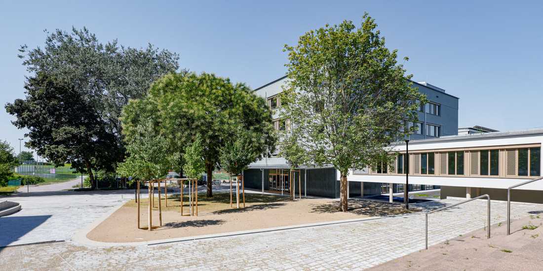 Die Max-Planck-Schule entsteht durch den Zusammenschluss der Max-Planck-Realschule und der Johann-Heinrich-von-Landeck-Schule. Mit einem modernen Neubau von rund 3.300 m² Nutzfläche wird Platz für bis zu 1.200 Schülerinnen und Schüler geschaffen. Neben lichtdurchfluteten Klassenzimmern und Fachräumen bietet die Schule flexible Lernbereiche, einen großen Veranstaltungsraum sowie einen neu gestalteten, grünen Schulhof. Das Gebäude erfüllt höchste energetische Standards (Effizienzgebäude 40) und setzt mit Photovoltaik, Gründach und nachhaltiger Ausstattung auf Zukunftsfähigkeit. Ein durchdachtes Farb- und Materialkonzept rundet die Architektur ab und schafft eine einladende Lernumgebung.