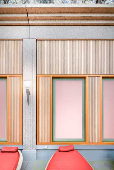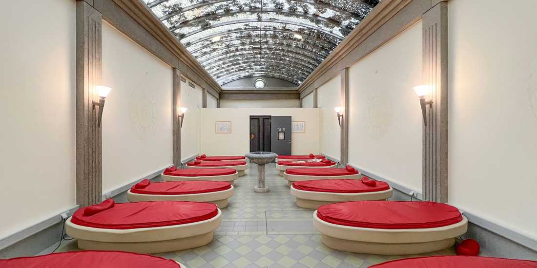 Bei der Neugestaltung des Ruheraums Silencio sollte eine ruhige und gemütliche Atmosphäre geschaffen werden. Charakteristisch für den Raum ist das Gewölbe sowie die Sichtbetonelemente, die im neuen Gestaltungskonzept bewusst erhalten und gestalterisch hervorgehoben werden.